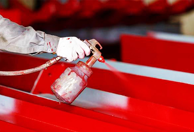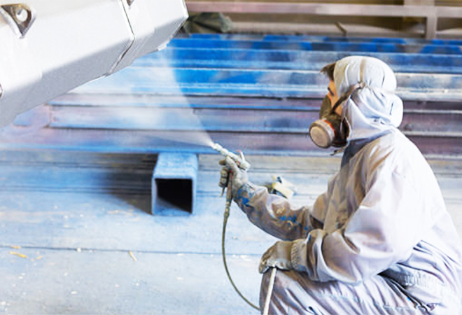 액체 상태의 페인트와 신너를 혼합한 후 Spray Gun을 이용하여 도장하는 방식으로 하도,중도,상도의 3가지 단계로 진행되며, 깔끔하고 섬세한 작업이 가능하지만, 도료의 특성상 흘러 내리기 때문에 전문적이고 숙련된 기술이 필요합니다.